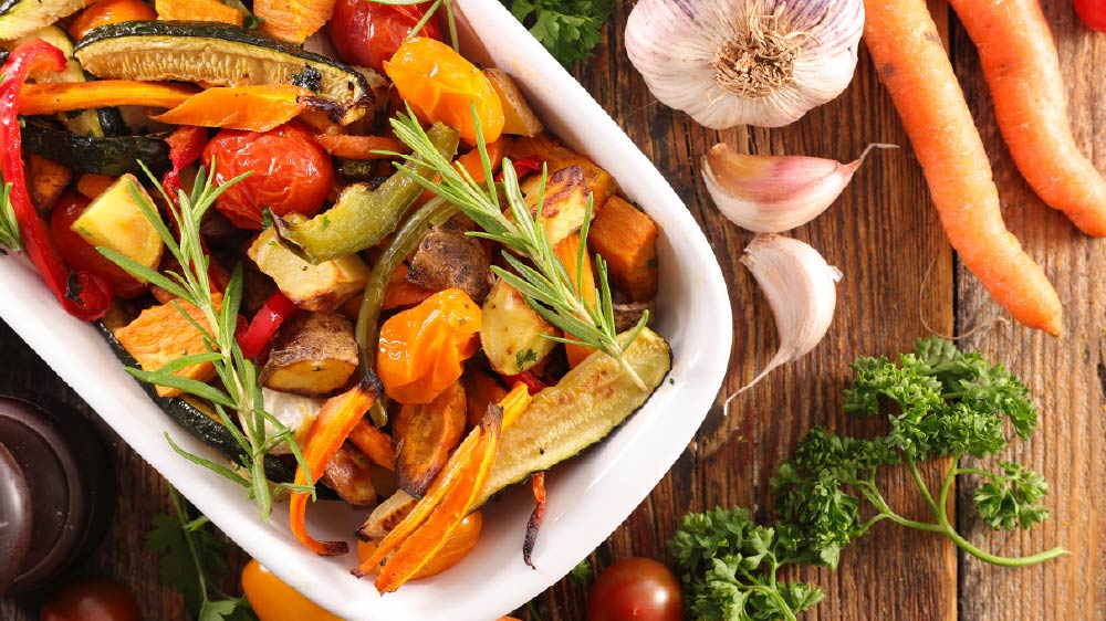 Seasonal veg charred and brightened with a punchy mustard dressing. Simple, delicious.